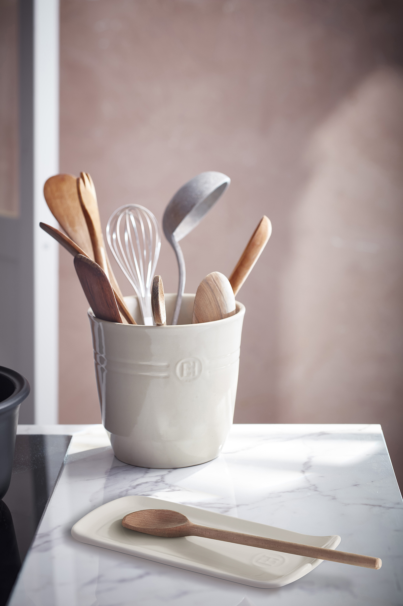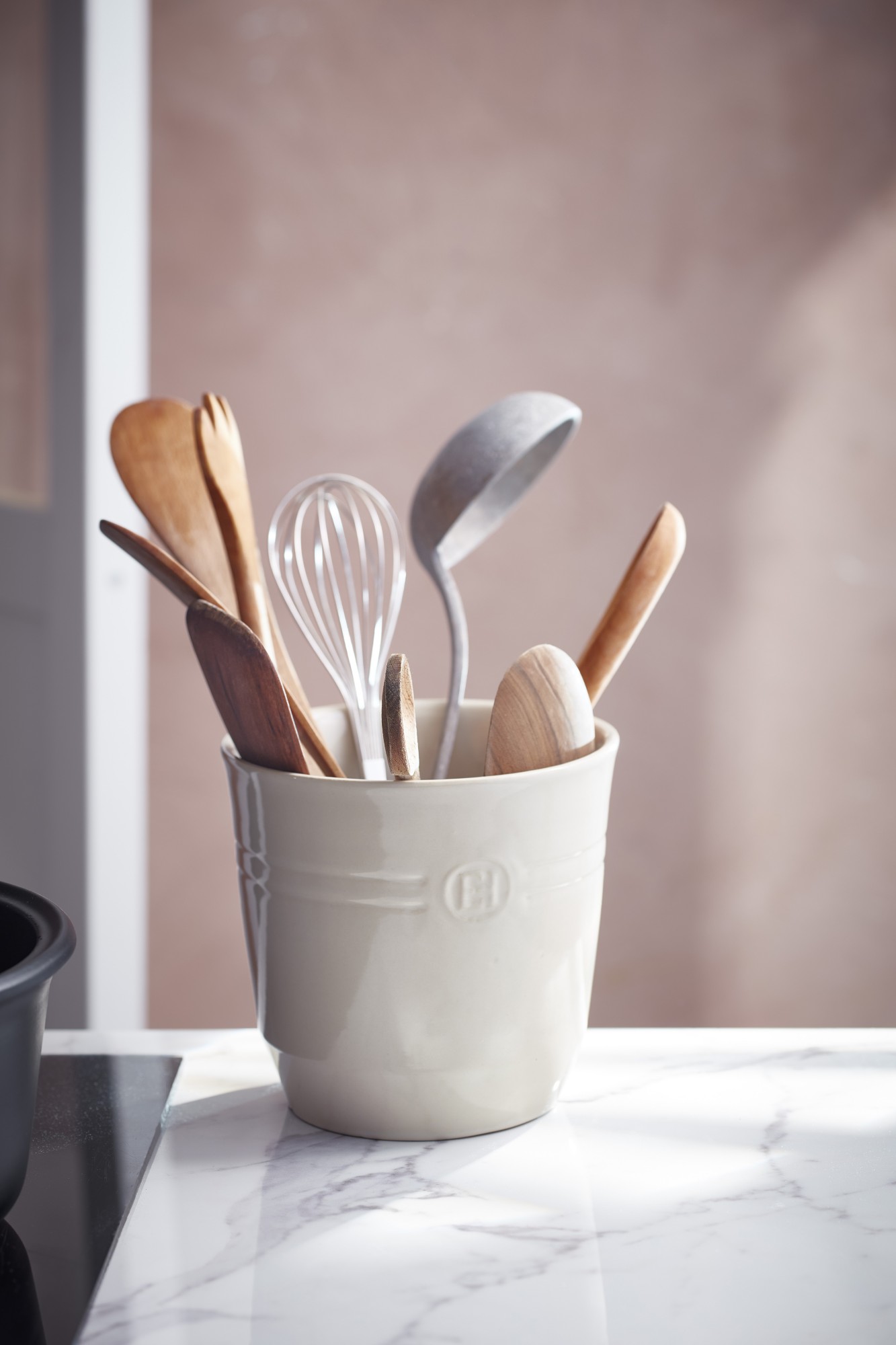 Ge ditt kök en touch av elegans samtidigt som du håller dina köksredskap organiserade med den nya köksredskapshållaren från Emile Henry . Den kombinerar hållbarhet med estetik och fungerar som både ett köksessentiellt och ett dekorativt tillbehör till bänkskivan, vilket gör den praktisk och attraktiv, även i ett traditionellt inrett kök.