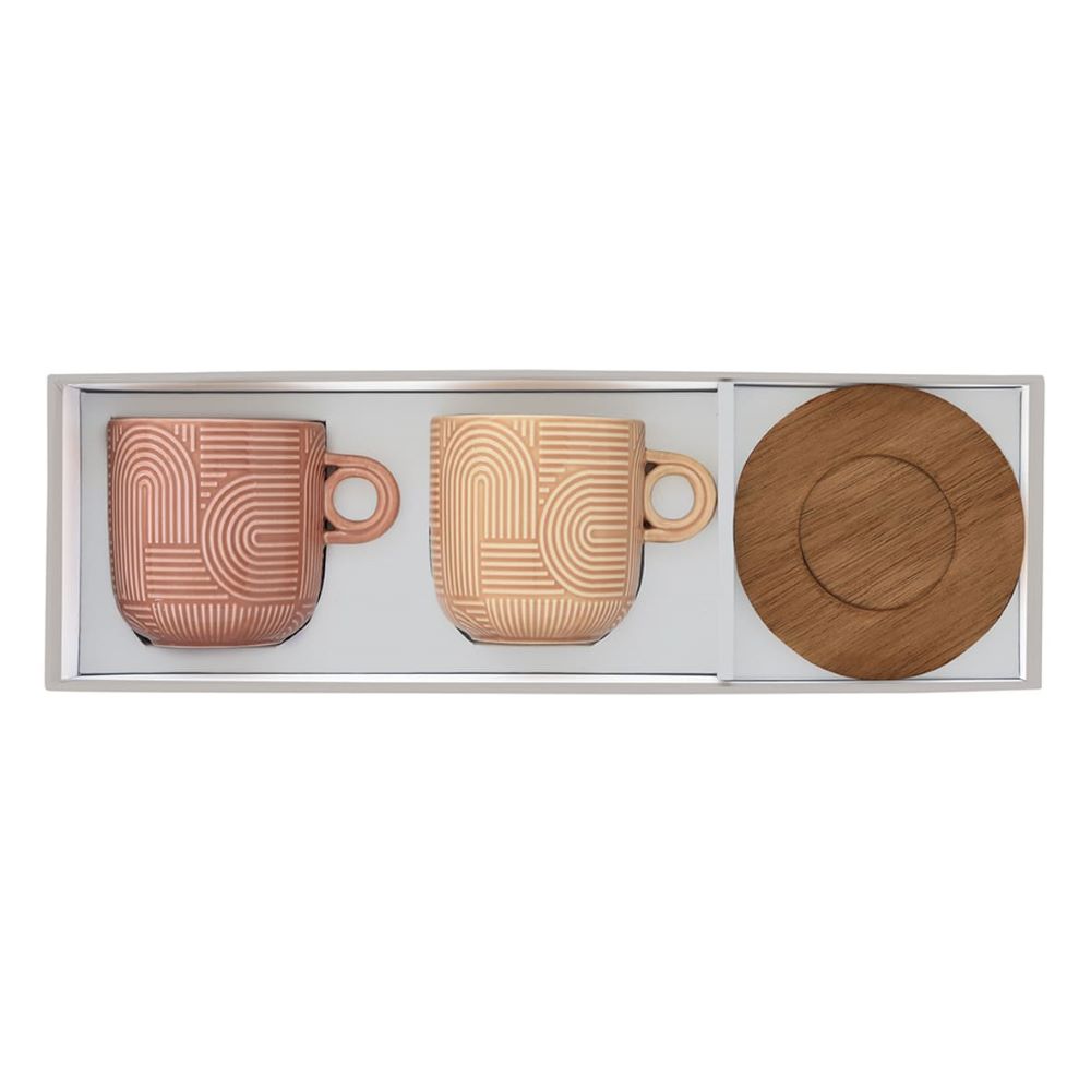 Nuova R2S tarafından üretilen"Take a Loop", akasya ağacından tabaklı, bireysel kapasiteli 250 ml'lik porselenden yapılmış 2'li çay bardağı seti.