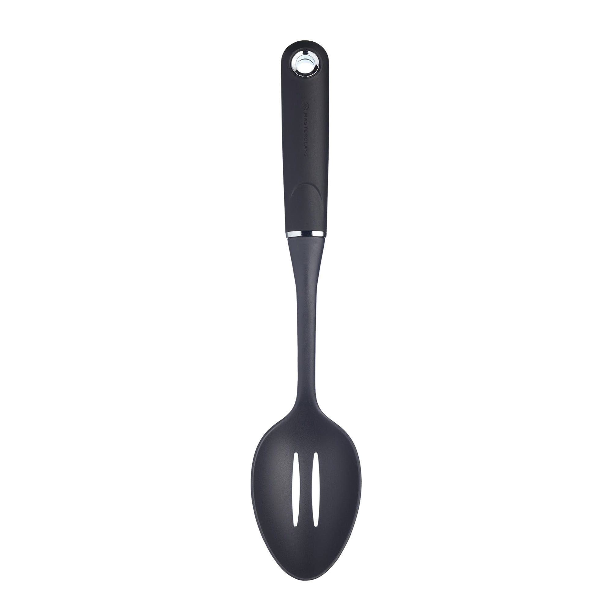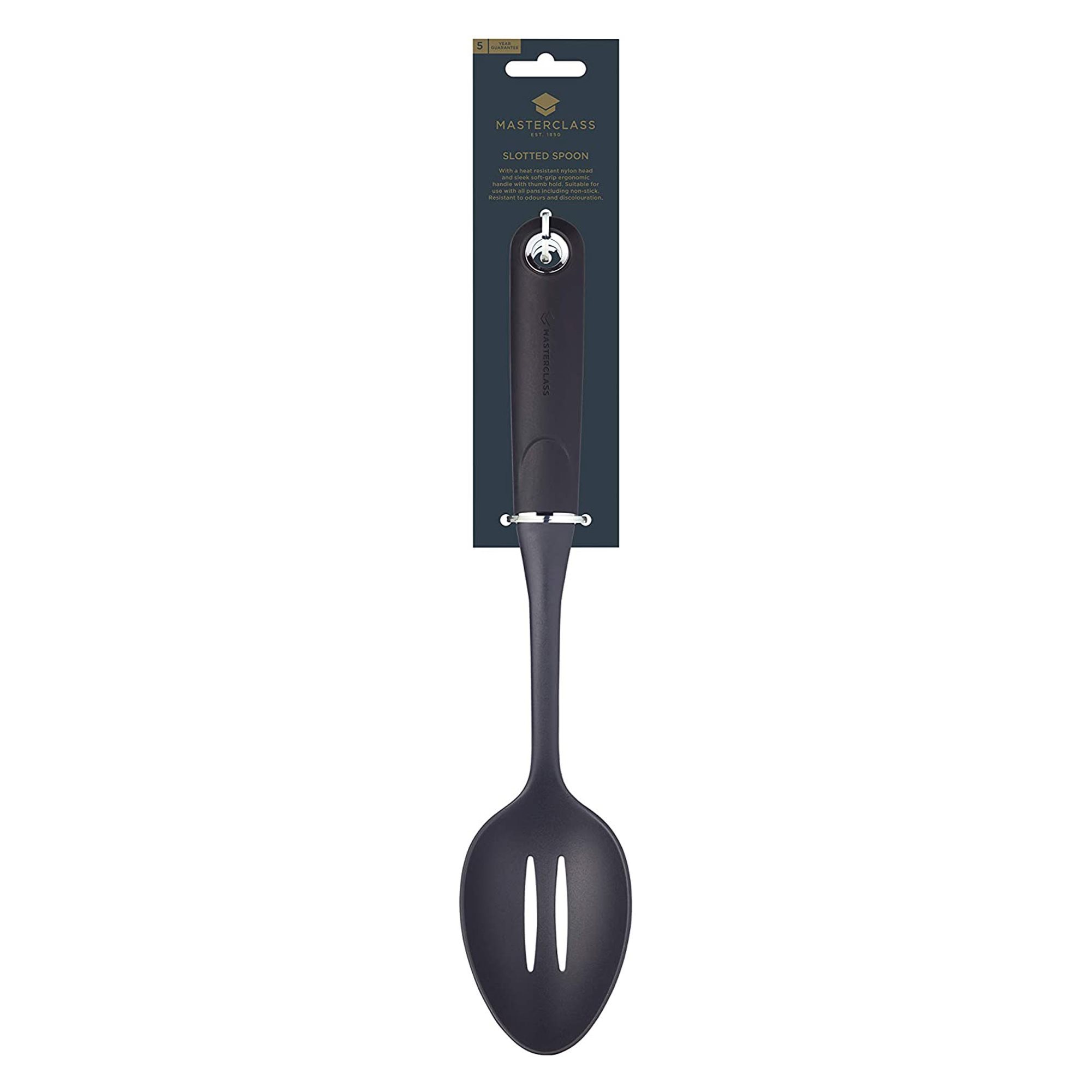 MasterClass serisinden, sıvıların süzülmesini sağlayan yuvalarla tasarlanan bu yumuşak saplı kaşık, sebzeleri veya eti tavadan veya derin yağda kızartıcıdan çıkarmak veya sert veya yumuşak haşlanmış yumurtaları tavadan tabağa aktarmak için idealdir.